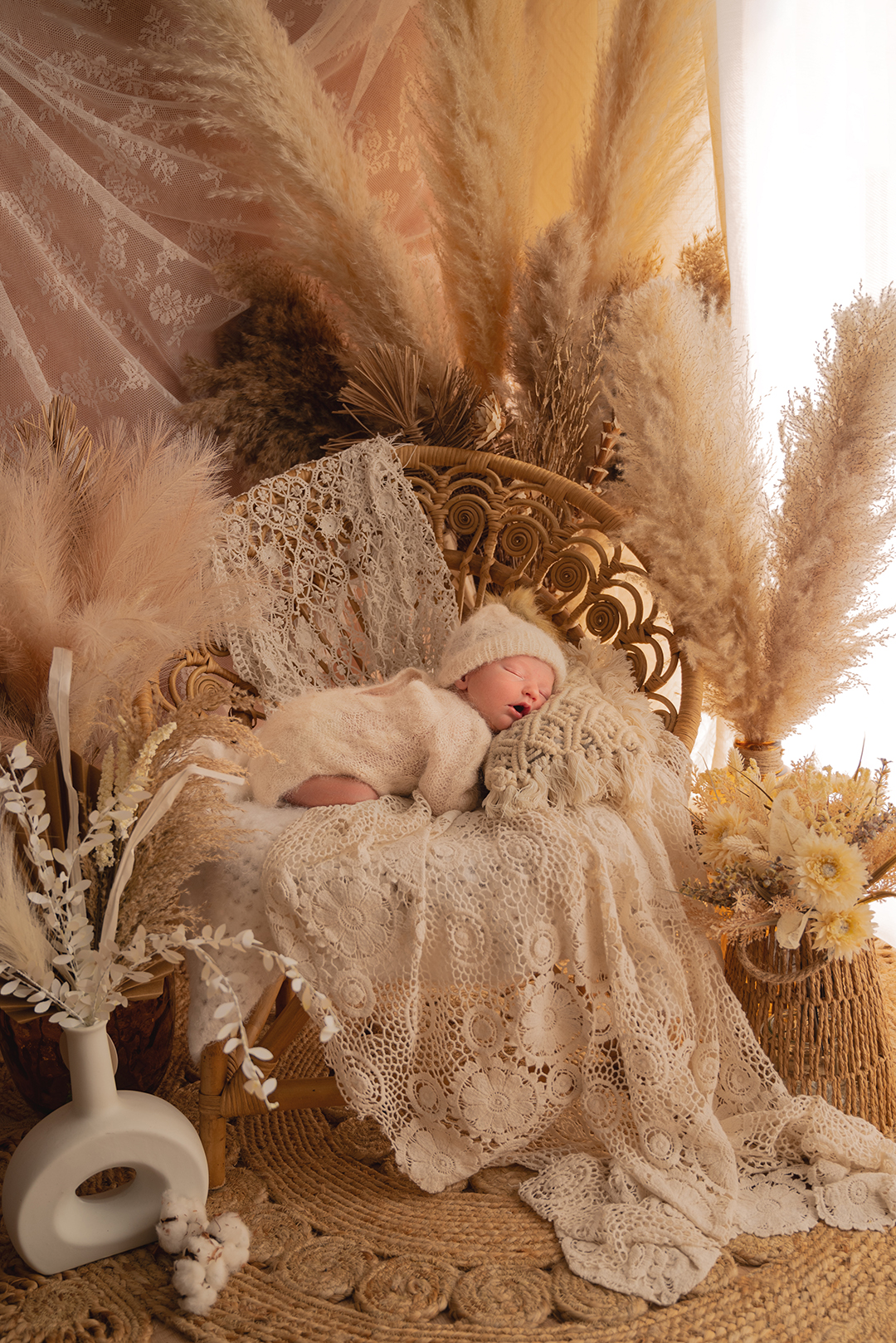 Pensé comme une bulle de douceur pour toute la famille, mon studio dévoile une décoration douce et fleurie, sublimée par le charme de la dentelle, la délicatesse des fleurs séchées, les textures du macramé et du crochet, et la chaleur des matières naturelles (bois, rotin, laine). C’est dans cette ambiance bohème unique, baignée d’une douce lumière naturelle, que je capture vos précieux moments.